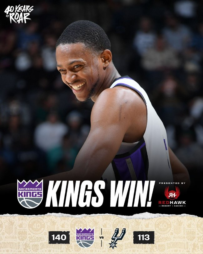文班亚马连续缺阵,国王4东说念主20+简陋得到大捷。