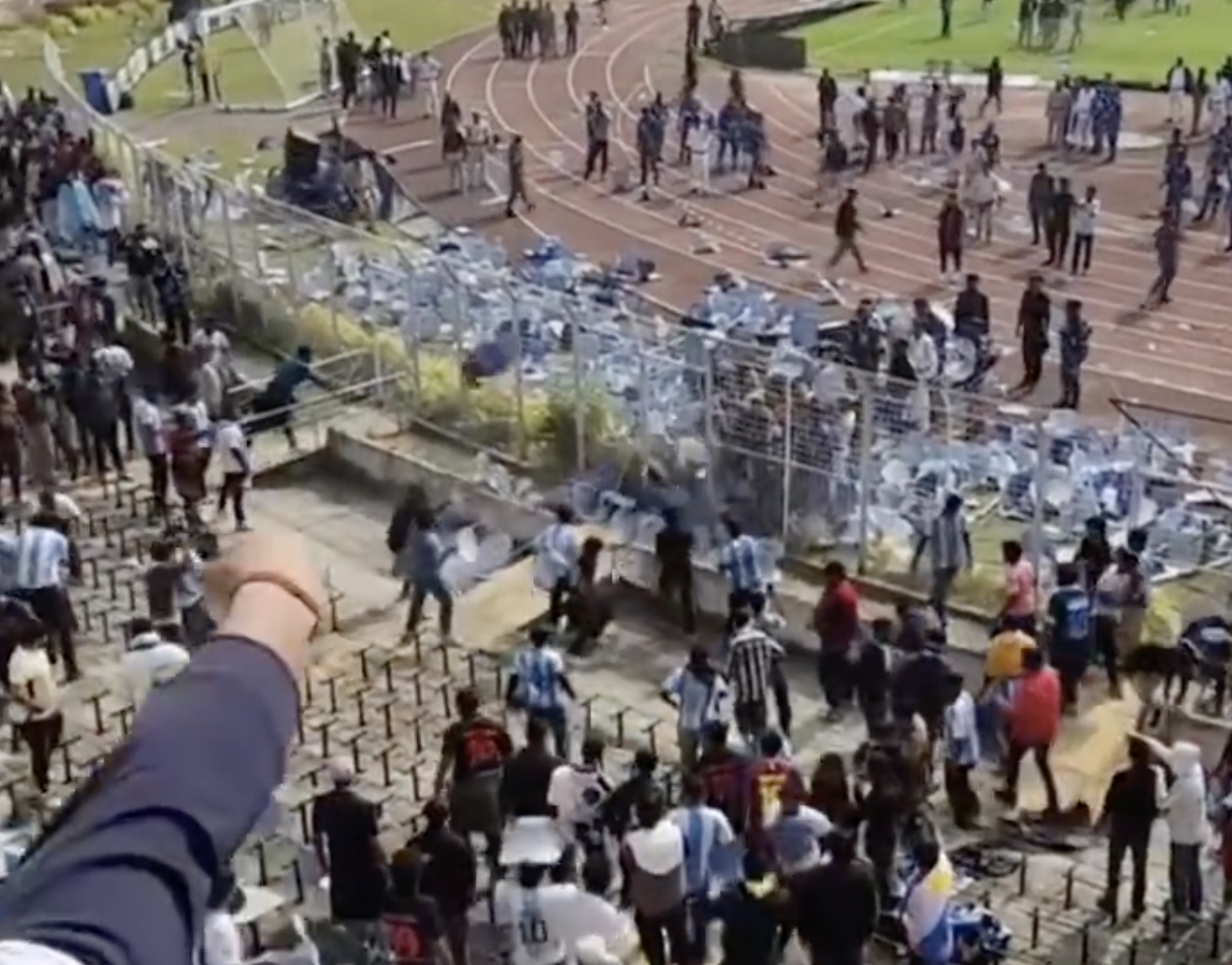 一看梅西离开,8万名球迷绝对暴怒,许多东说念主冲下看台,怒砸球场内的步调,激励了大面积的骚乱。印度政府对这次事故高出深嗜。警方坐窝介入,第一时辰逮捕了梅西印度行的负责东说念主、当地富豪萨塔德鲁-杜塔。