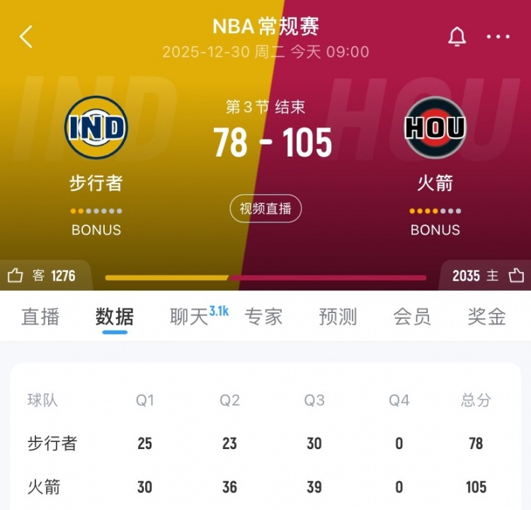 这种迫切顶不住!火箭前三节每节得分都30+ 节节压制步行者!