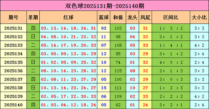 双色球红球详尽分析: